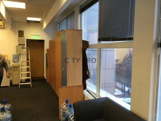 офисное помещение с ремонтом, смешанная планировка, высокий потолок, большие окна. Есть свой сан узел, а так же общий в коридоре.