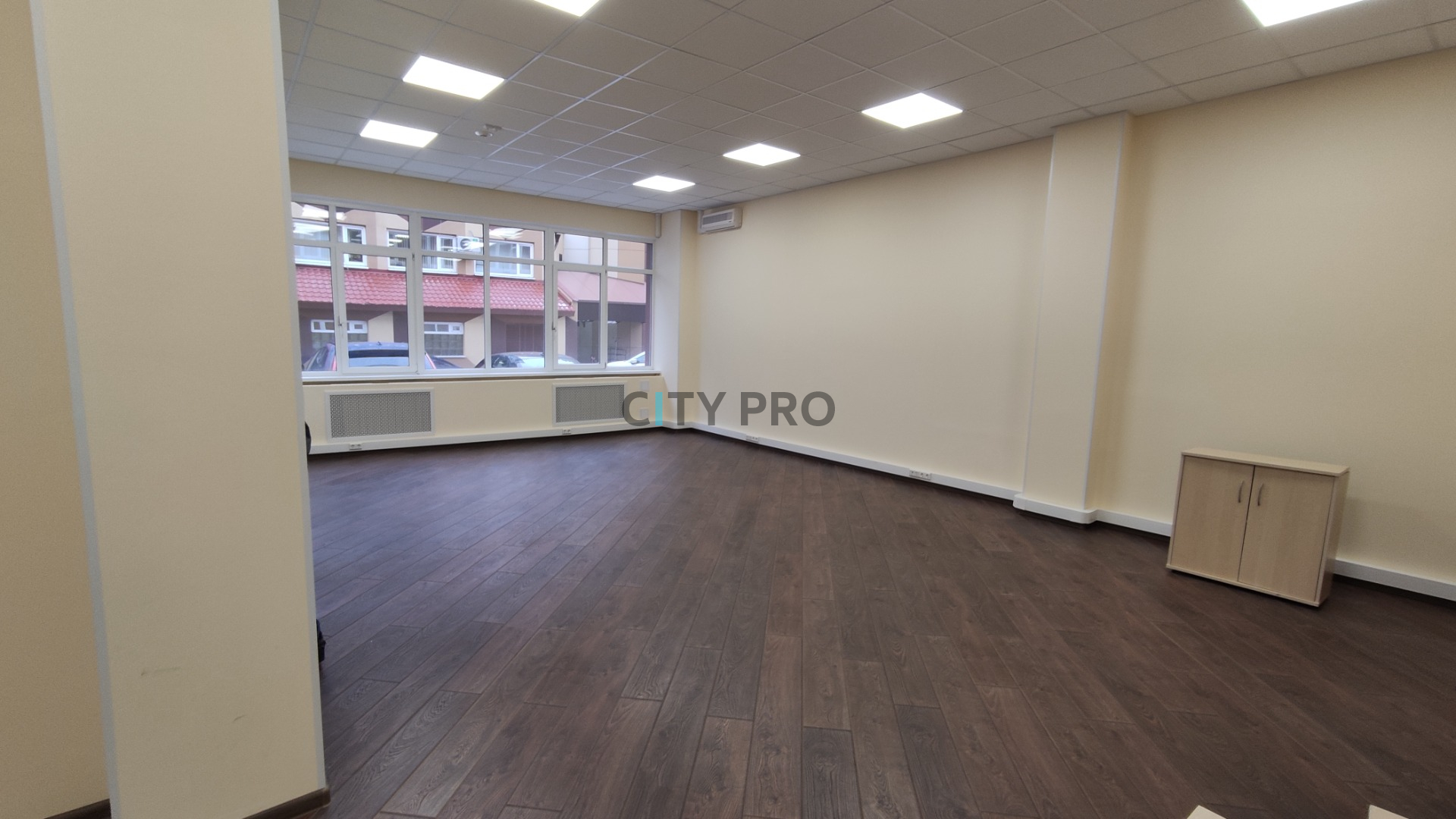 Офисное помещение с новым хорошим ремонтом. Планировка открытая + кабинет руководителя. Высокие потолки и большие окна, установлены кондиционеры.