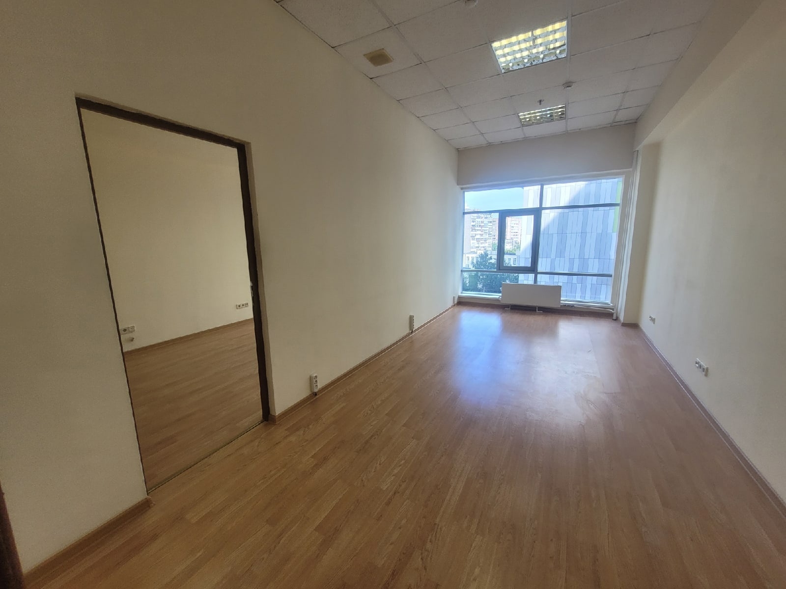Офисное помещение с ремонтом, большие панорамные окна, высокий потолок. Удобная планировка, входная группа и два кабинета.